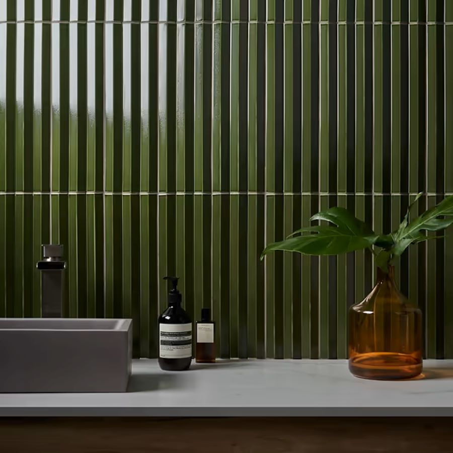 Accordion. A contemporary three dimensional extruded porcelain. Produced in a 5×16 “multi-V” surface in 6 bold colors- Iris, Metallic Grey, Ochre, Ruby Red, Verde and White. Add the texture and color of Accordion to wall projects indoor or out.