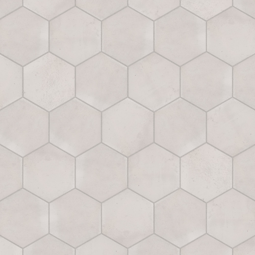 Modeling a stone look, our Brooklyn Porcelain Floor and Wall Tile features a smooth, glossy finish, providing decorative appeal that adapts to a variety of stylistic contexts. The Hexagon contain 12 different print variations that are randomly distributed throughout each case; the 3×12 brick have 20 and the fluted Legato have 5.