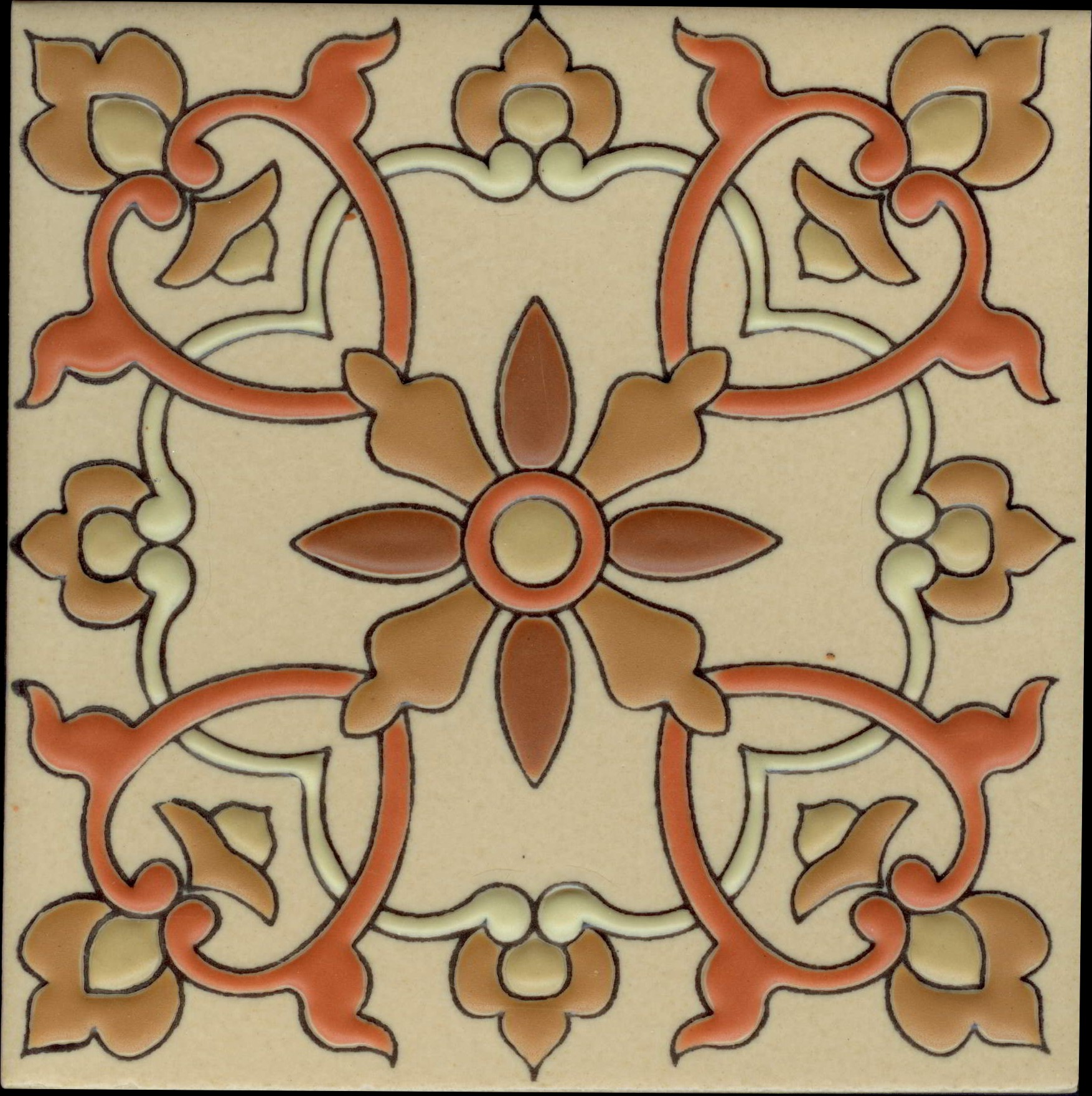 Our Catalina Collection pays homage to these original tile arts; but updated and upgraded. The bisque is porcelain and the wax relief glazes are high fired at over 2500 degrees F, producing an incredibly durable product that can be used indoor and out, on vertical and horizontal surfaces. The designs lend themselves to Spanish Colonial and Mediterranean styles, using a more modern color palette.