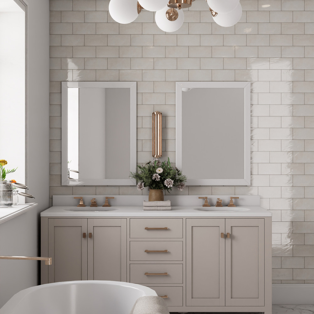 Context. The square cut edges contrast with the undulated finish, giving it a contemporary hand made style. This 4×8 ceramic wall tile is available in 6 different colors with a matching deco containing 11 different print variations that are randomly distributed throughout each case.