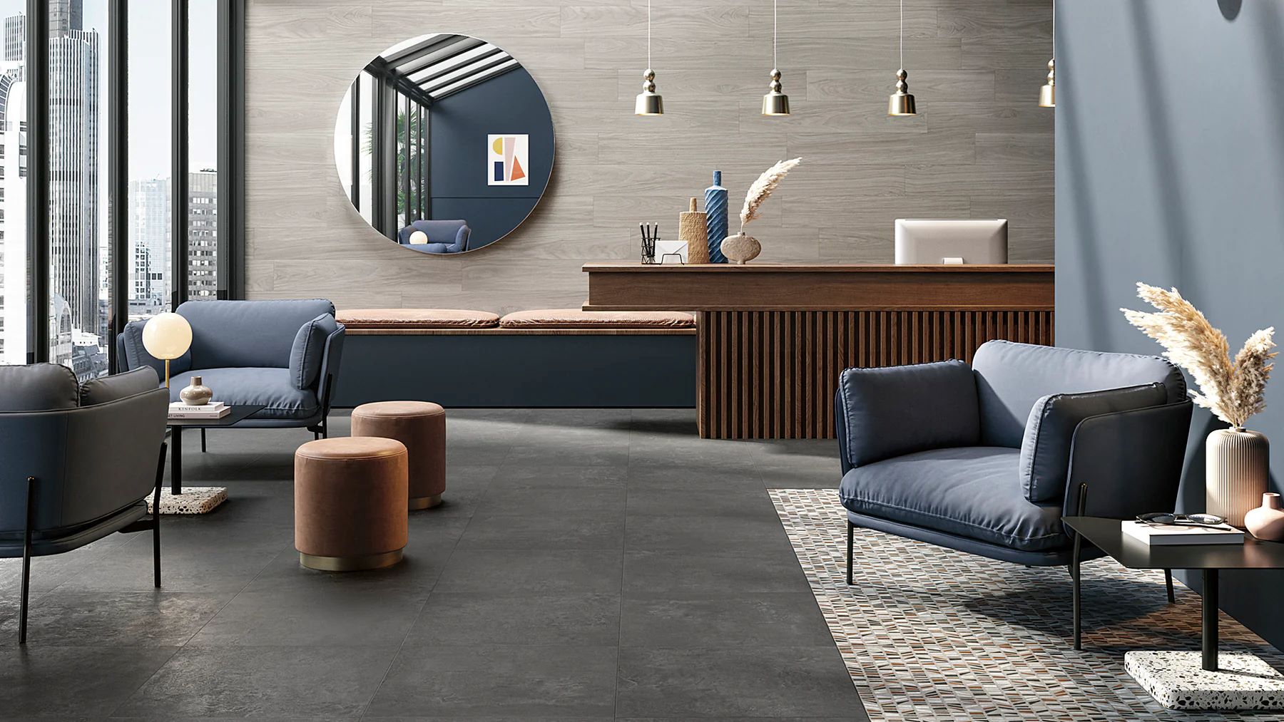 ESSENTIAL reinvents the classic charm of minimal cement with a contemporary twist. Experience the subtle iridescence that comes alive as light dances across its surface. Manufactured in 12×24, 24×24, 24×48, and 2×2 mosaic. Essential- a color palette based on the typical hues found in cement with colors of White, Beige, Grey and Graphite.