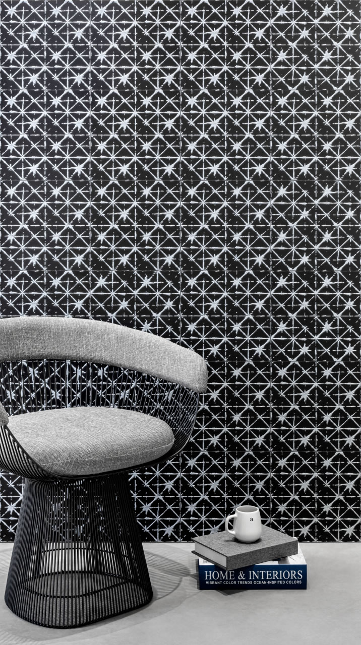 Fibra is an artistic tile inspired by natural fibers, symbols of comfort and coziness. The neutral and subtle color features a metallic touch, evoking human development and the need for technological awareness.
