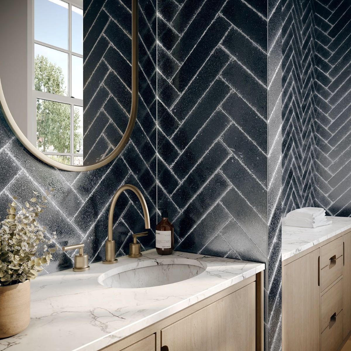 Lava Basaltina, thanks to its distinctive texture, and intrinsic characteristics, reacts uniquely to the glazing and firing process. This, unlike other materials, contributes to creating intense and vibrant chromatic effects.