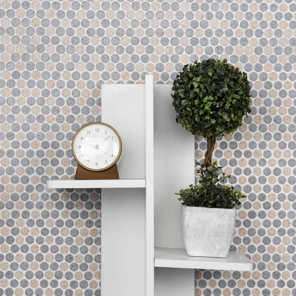 Our Lincoln Circle Porcelain Mosaic features a smooth, matte and gloss finish, providing decorative appeal that adapts to a variety of stylistic contexts. With its impervious, frost-resistant features, this penny-round mosaic is an ideal selection for a variety of spaces including indoor and outdoor residential installations, bathrooms, back splashes, showers, hallways, pools and fireplace facades.