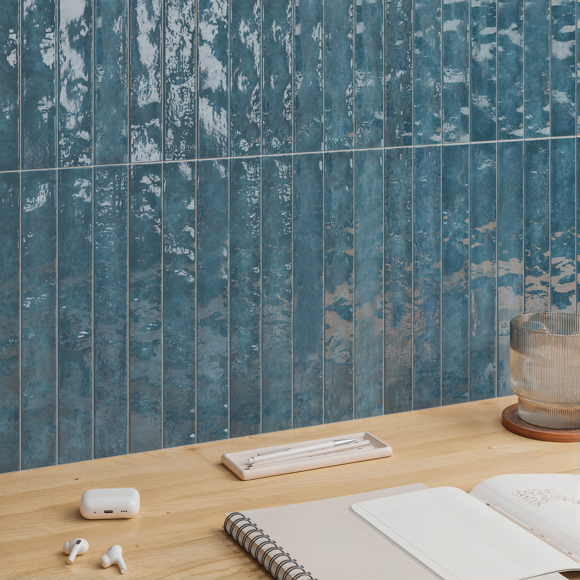 Each piece carries a sense of serenity, wind, and horizon, connecting subtly with nature. “Mistral” is created in 1.5×12” in the eight colors of Aquamarine, Bone, Forest, Indigo, Khaki, Lavender, Opal Blue, and White (gloss).