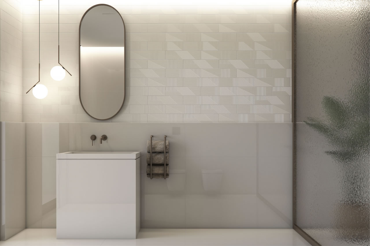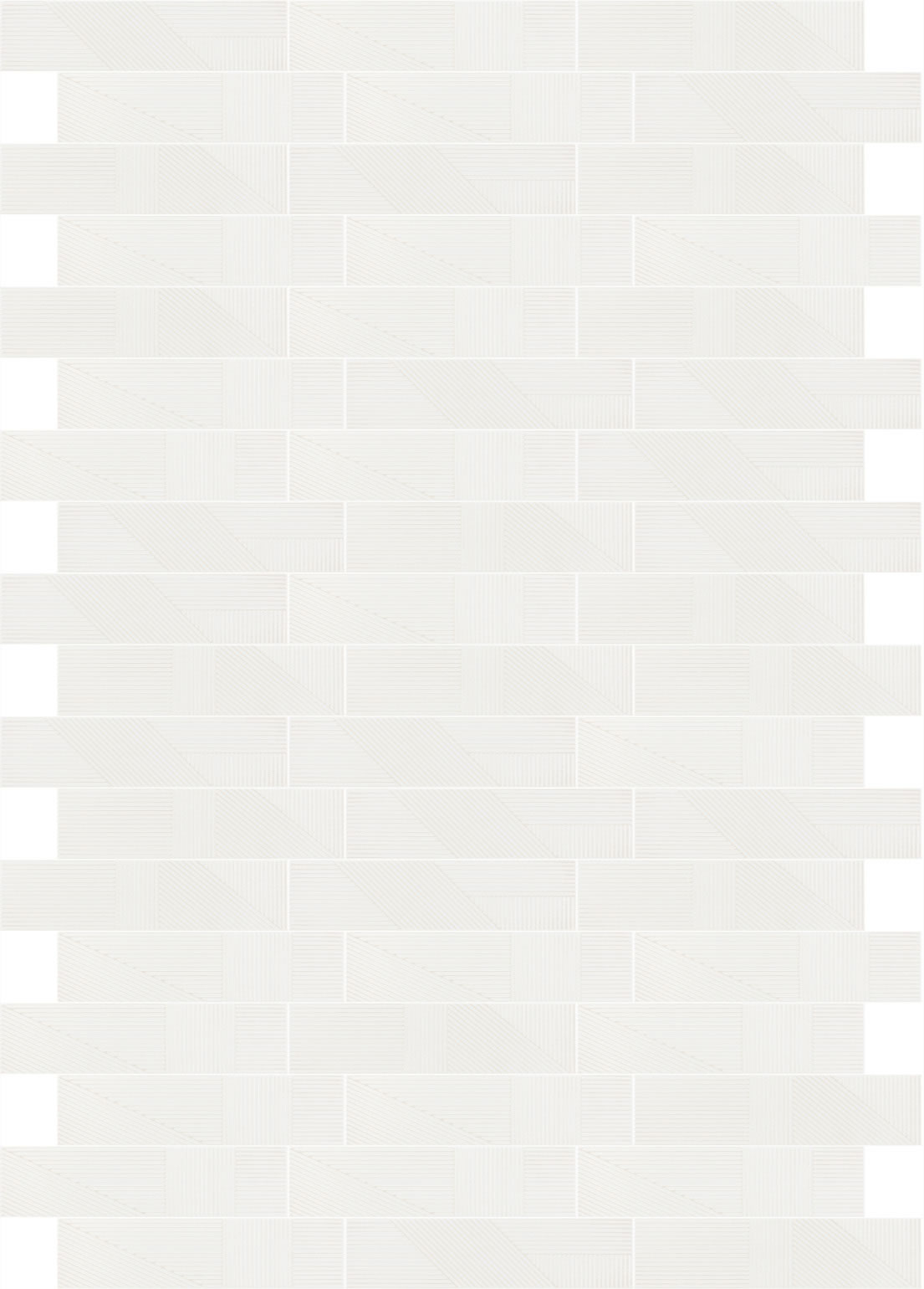Natural Collection is even more versatile and modern due to its variety of possibilities. The 13×24 satin and gloss white field is the canvas for your art. The 4×16 satin and gloss white field increases dimension while the Opera and Tribal in gloss white and grey add tactile and visual texture.
