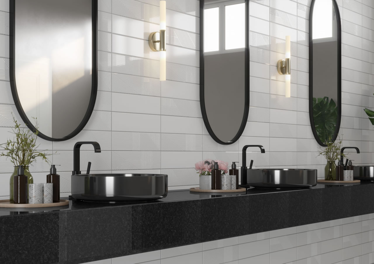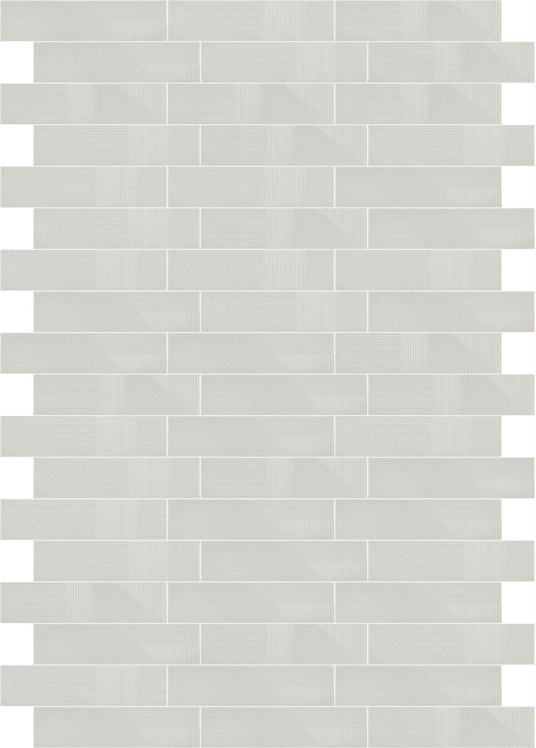 Natural Collection is even more versatile and modern due to its variety of possibilities. The 13×24 satin and gloss white field is the canvas for your art. The 4×16 satin and gloss white field increases dimension while the Opera and Tribal in gloss white and grey add tactile and visual texture.