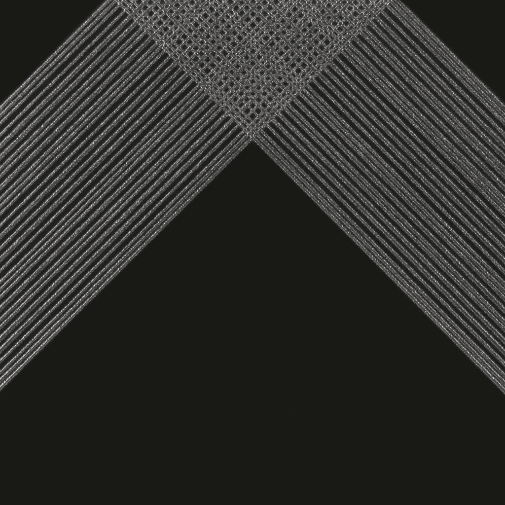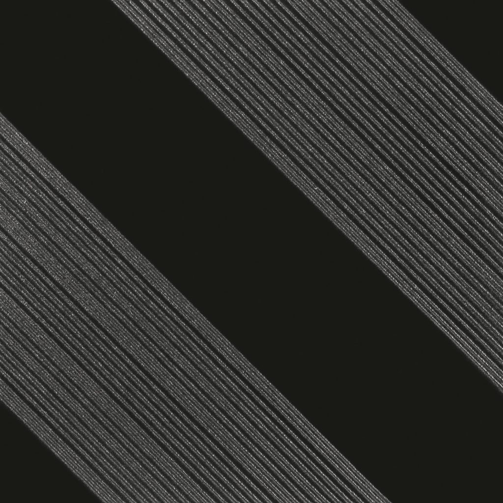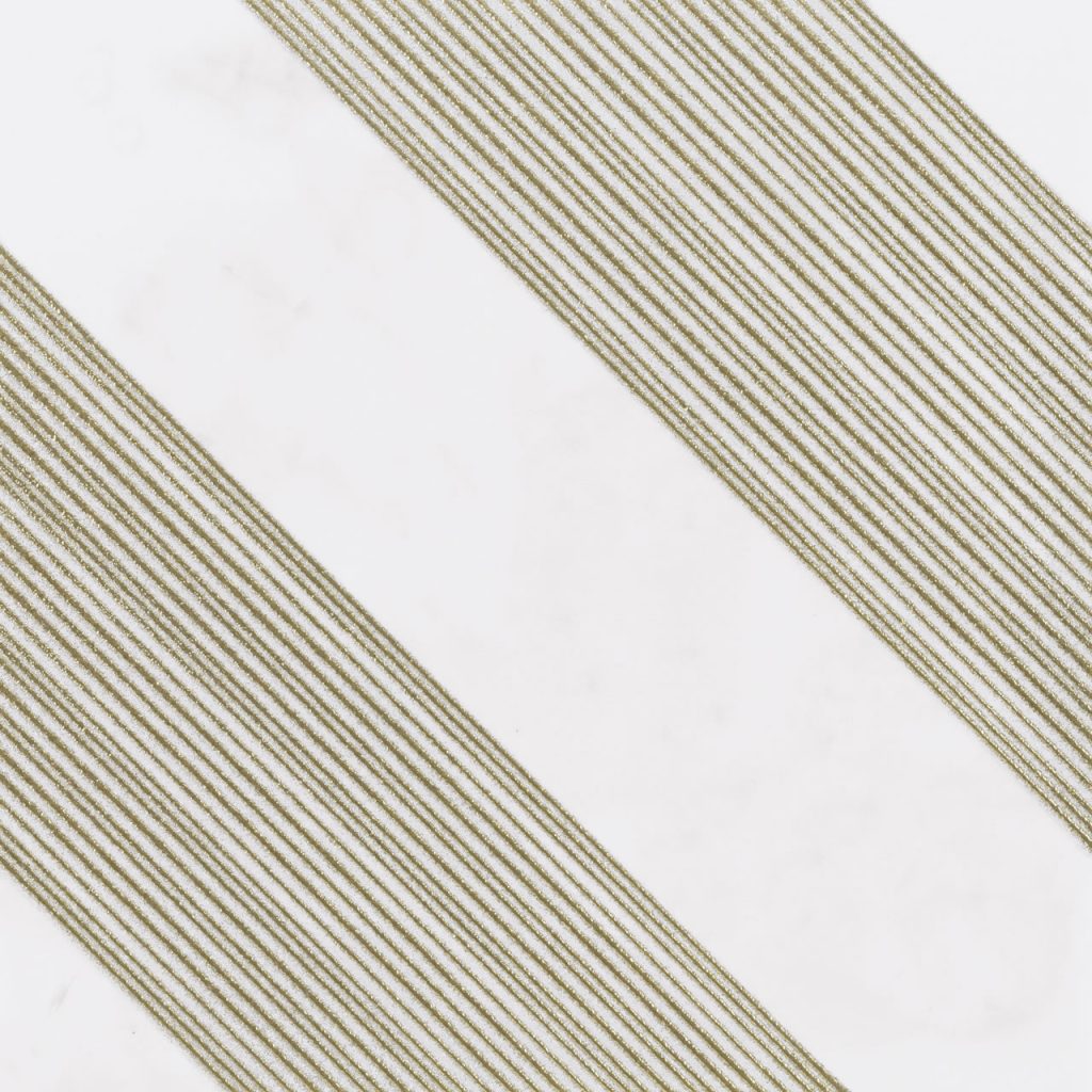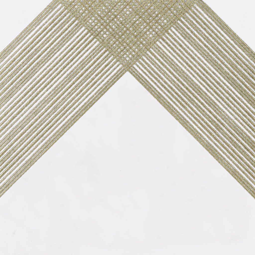 Outline. A 12×12 monochromatic surface in pure and simple black or white with special decorative elements of fine metallic lines. Three different patterned tiles create dozens of design opportunities.