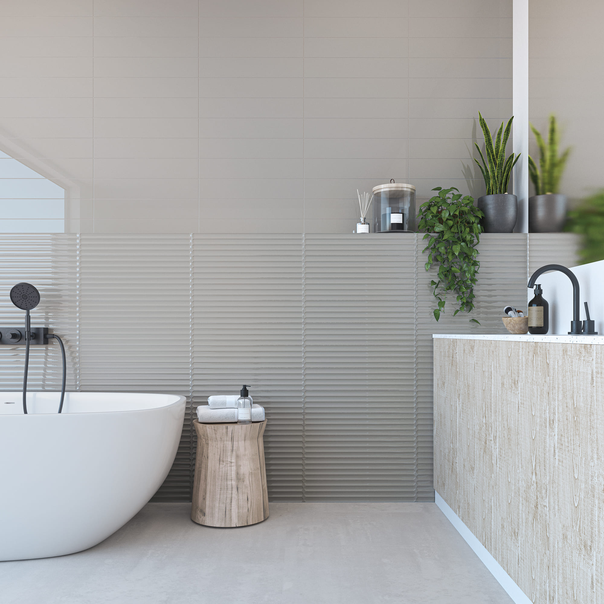 “Plinto” is a 4”x21” created in a smooth field, Concave (In), Convex (Out) in gloss and matte finishes. Available in Blue, Green, Greige, Grey and White for a total of 30 different item choices.