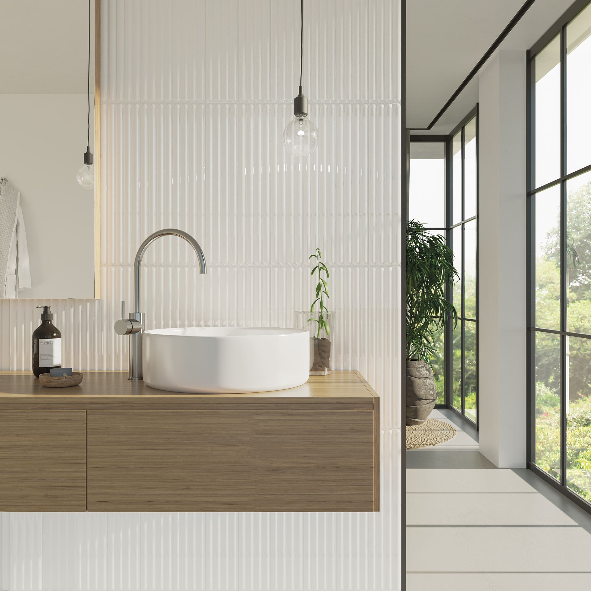 The “Plinto” collection is characterized by its shapes that protrude and recede, generating a visual effect that captures light and shadow in a sophisticated manner, perfectly adapting to a wide range of decorative styles. Perfect for those seeking a detail that elevates the appearance of their spaces.