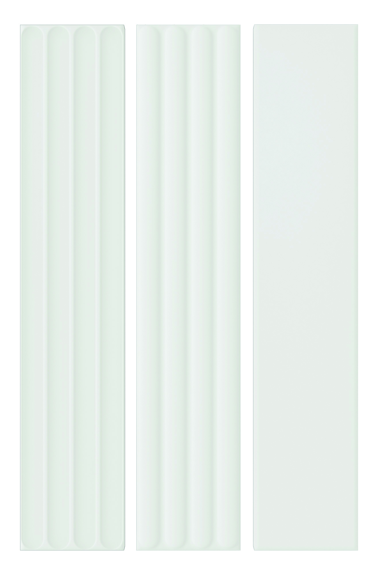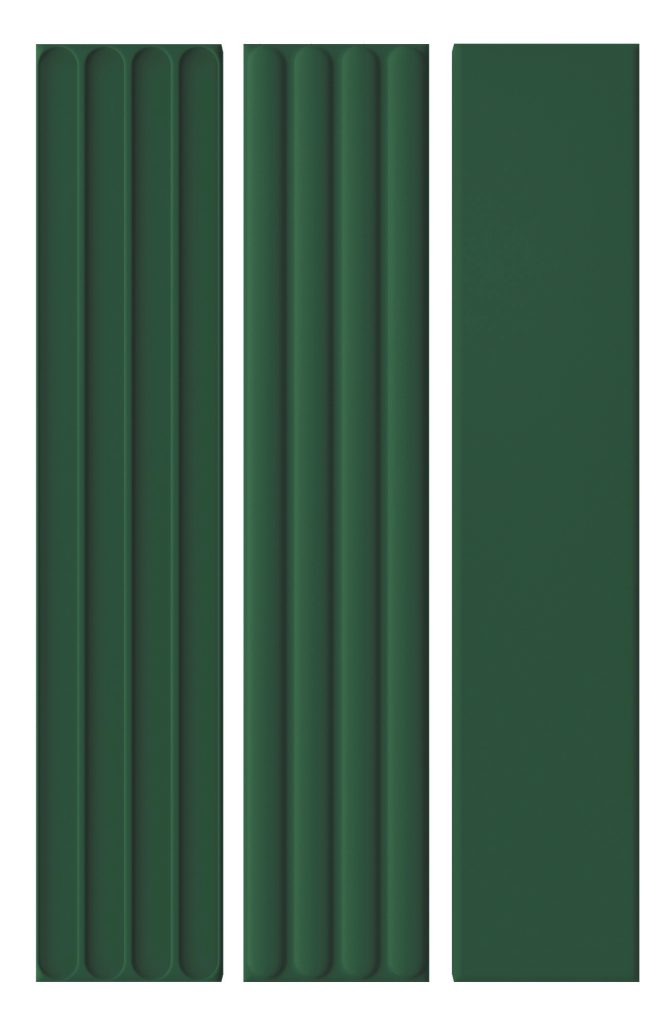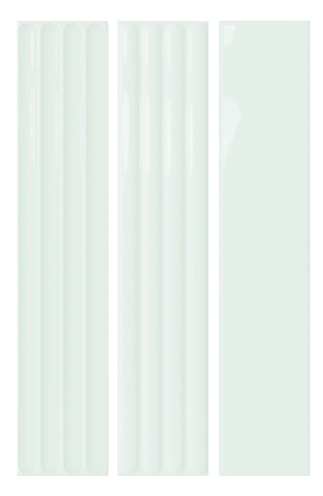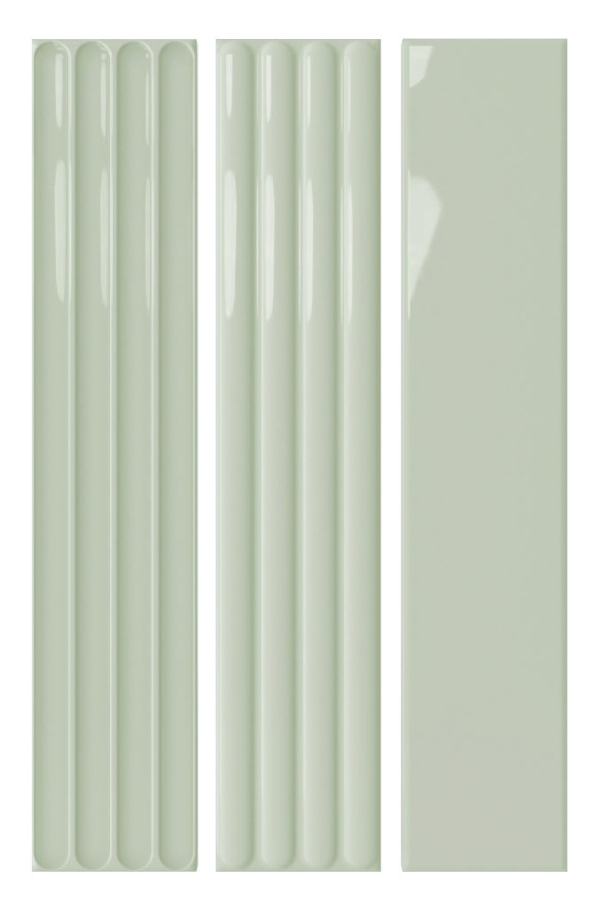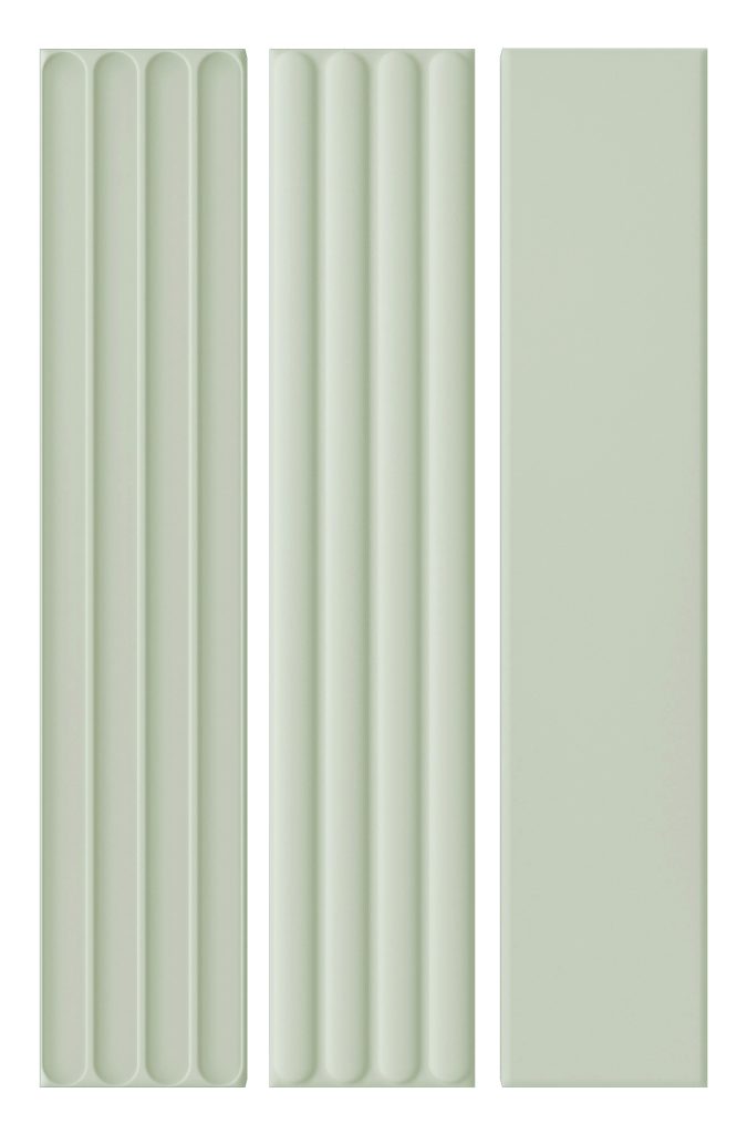 “Plinto” is a 4”x21” created in a smooth field, Concave (In), Convex (Out) in gloss and matte finishes. Available in Blue, Green, Greige, Grey and White for a total of 30 different item choices.
