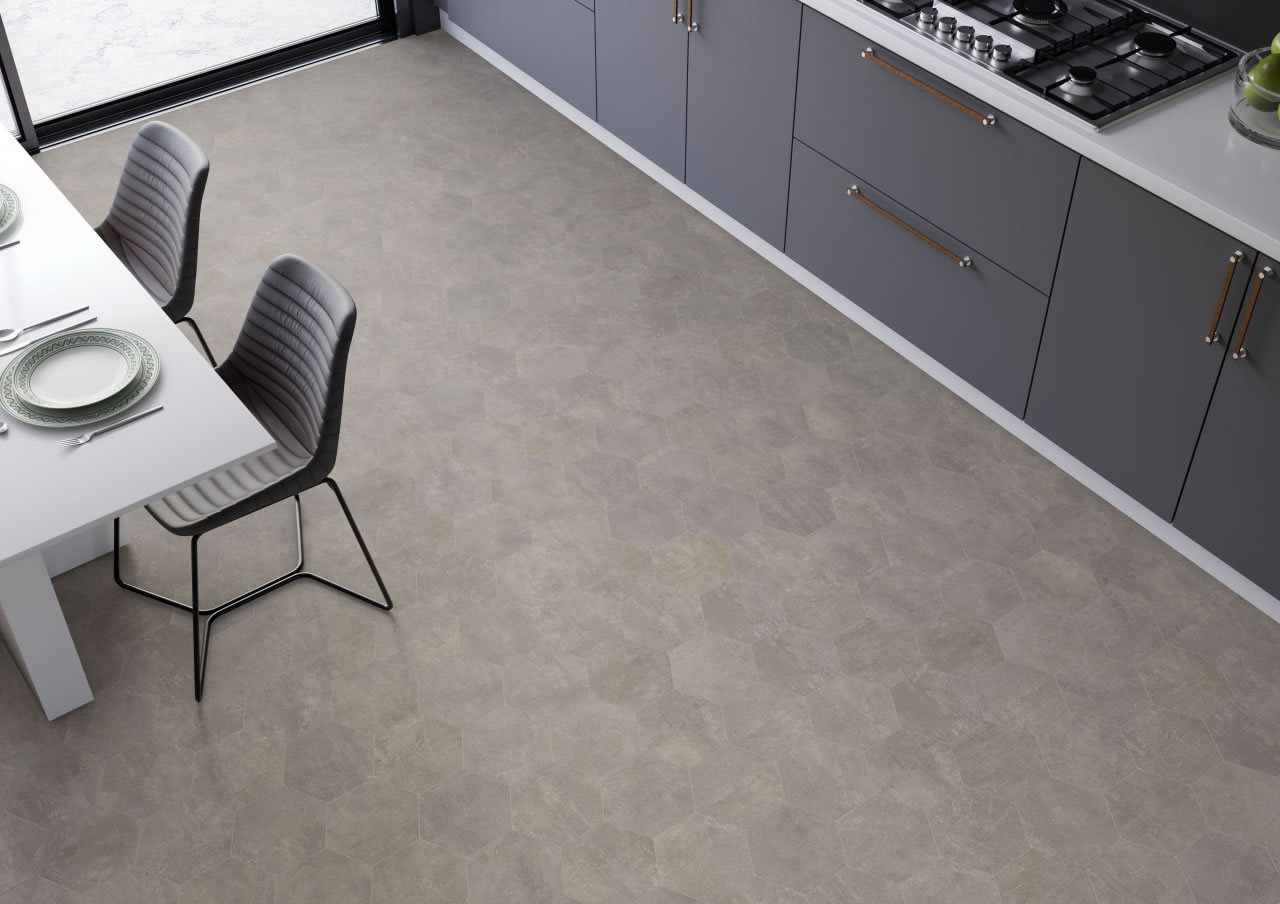 Our Sampa Hex gets its inspiration from time worn cement.  The satin textured surface and subtle shade variation is complemented by the 50 different design variants.  The timeless palette coupled with the enduring hexagon shape produce a style that will last for ages.
