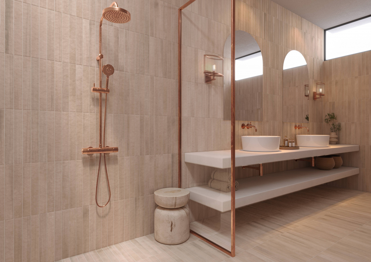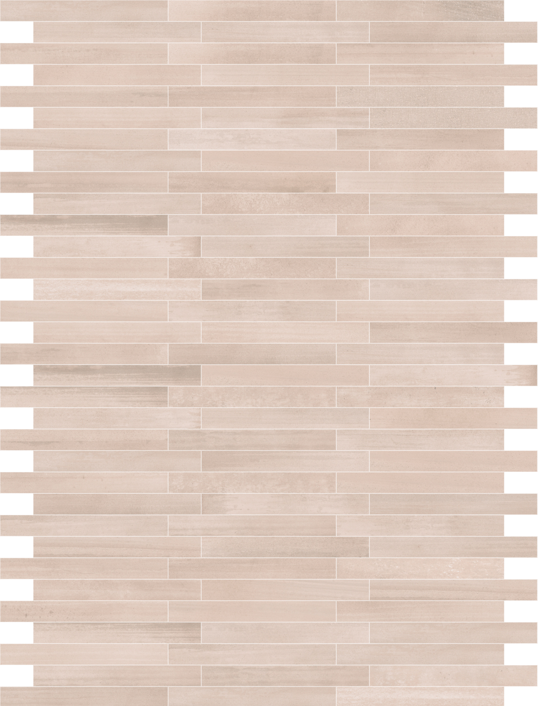 Whether soldier-stacked or offset, herringbone or basket weave, the Solos 2×16” field tile elevates any arrangement with its terracotta-like texture and nuanced variations.
