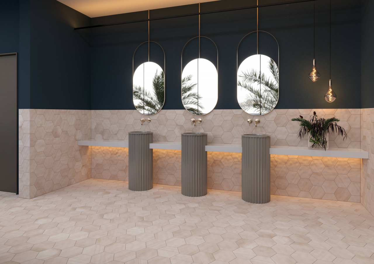 Simple yet impactful, the Solos 8” Hexagon field tile brings dynamic movement to your arrangement with a unique, stylish shape and gorgeous variations in color.