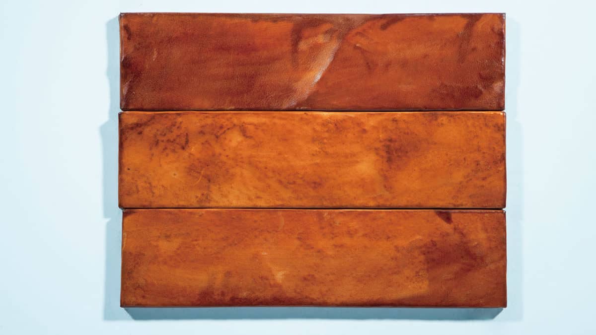 Tempered- A revolution in stone and tile. Realstone introduces natural stone tempered with the sleek polished look of glazed tile and rich leather. Tempered leather tile is a sandstone tile wrapped in rich genuine leather. It has a soft sheen and provides an opulent warm look. Paired with bullnose trim, this matching accessory provide a perfect finish to a beautiful application.