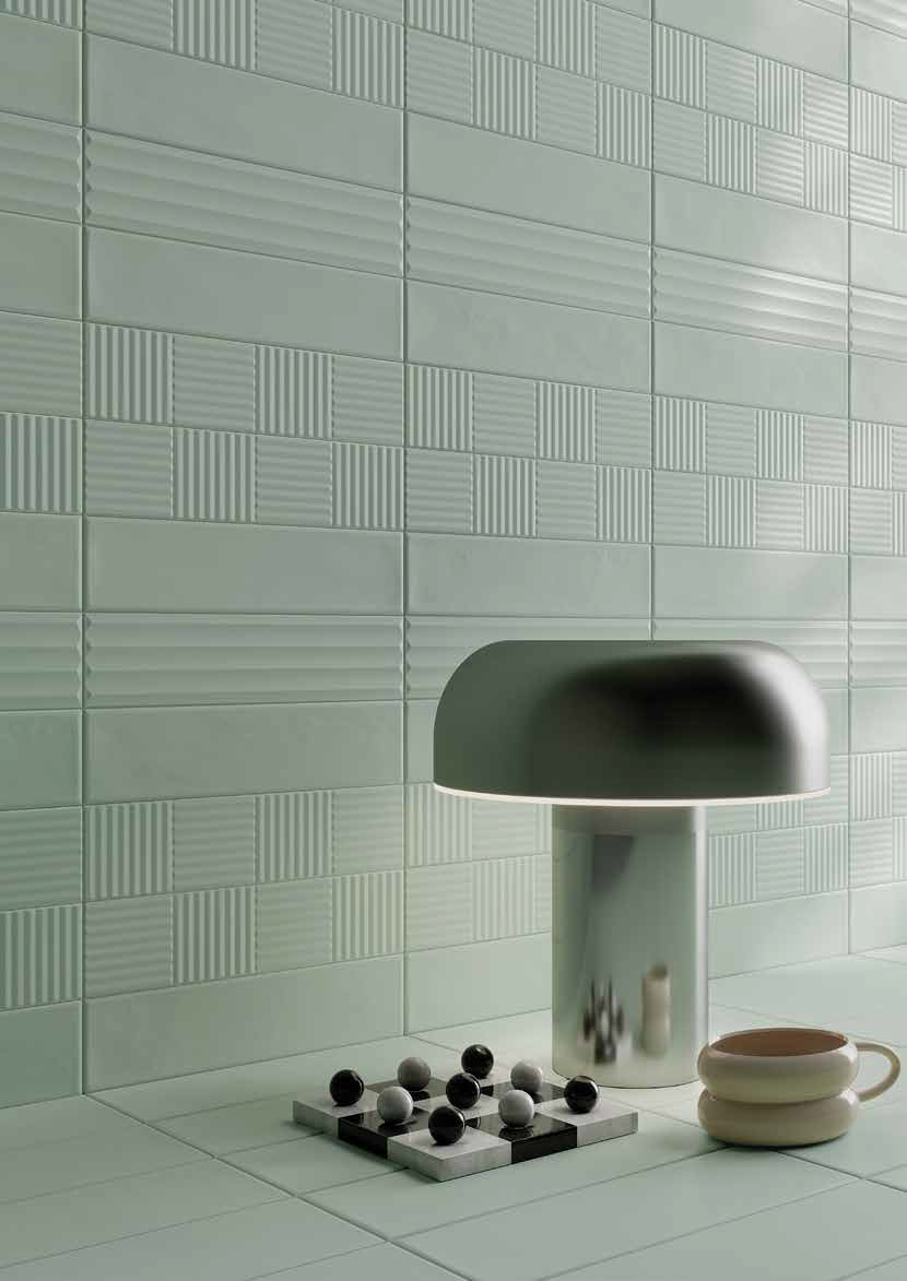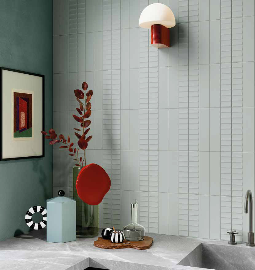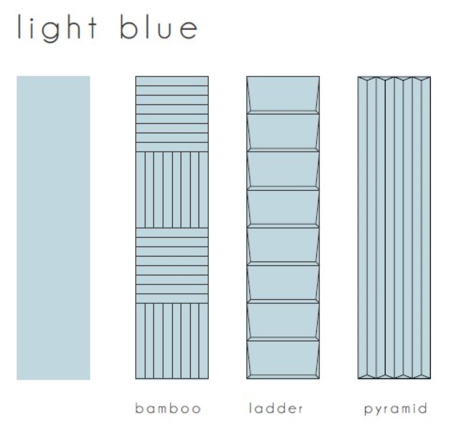 Volume- Experience the artistry of Italian design with Volume decorative porcelain tile collection. Crafted in serene ocean, light blue, sage, white, and ivory hues, each 2 1/3×10″ tile, with a durable 9.5mm thickness, invites a tranquil, sophisticated ambiance to any space. Choose from four unique textures—plain surface, pyramid, ladder, and bamboo—each adding a touch of elegance and depth to interior walls.