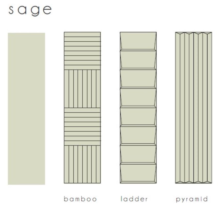 Volume- Experience the artistry of Italian design with Volume decorative porcelain tile collection. Crafted in serene ocean, light blue, sage, white, and ivory hues, each 2 1/3×10″ tile, with a durable 9.5mm thickness, invites a tranquil, sophisticated ambiance to any space. Choose from four unique textures—plain surface, pyramid, ladder, and bamboo—each adding a touch of elegance and depth to interior walls.