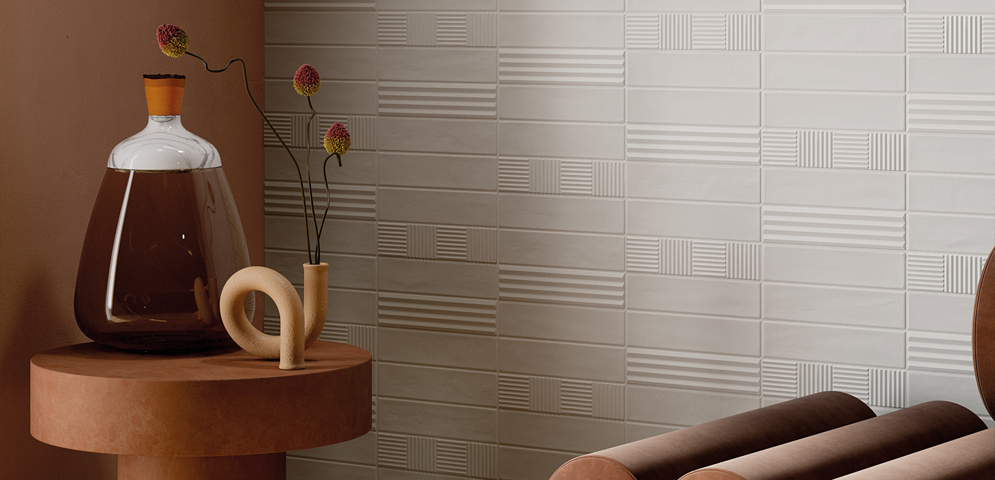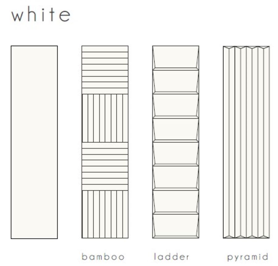 Volume- Experience the artistry of Italian design with Volume decorative porcelain tile collection. Crafted in serene ocean, light blue, sage, white, and ivory hues, each 2 1/3×10″ tile, with a durable 9.5mm thickness, invites a tranquil, sophisticated ambiance to any space. Choose from four unique textures—plain surface, pyramid, ladder, and bamboo—each adding a touch of elegance and depth to interior walls.