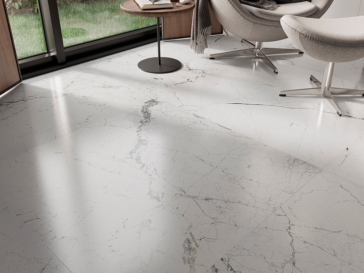 WINDSOR Capturing the appearance of a marble look, our Windsor Porcelain Floor and Wall Tile features a highly polished finish, providing decorative appeal that adapts to a variety of stylistic contexts. Inspired by the opulence of a Venetian hotel, capturing the iconic white and charcoal black hues of Carrara and St. Laurent marbles, the Windsor series is a perfect digital recreation of these luxurious stones.  Available in “Black” and “White” in 48×48”